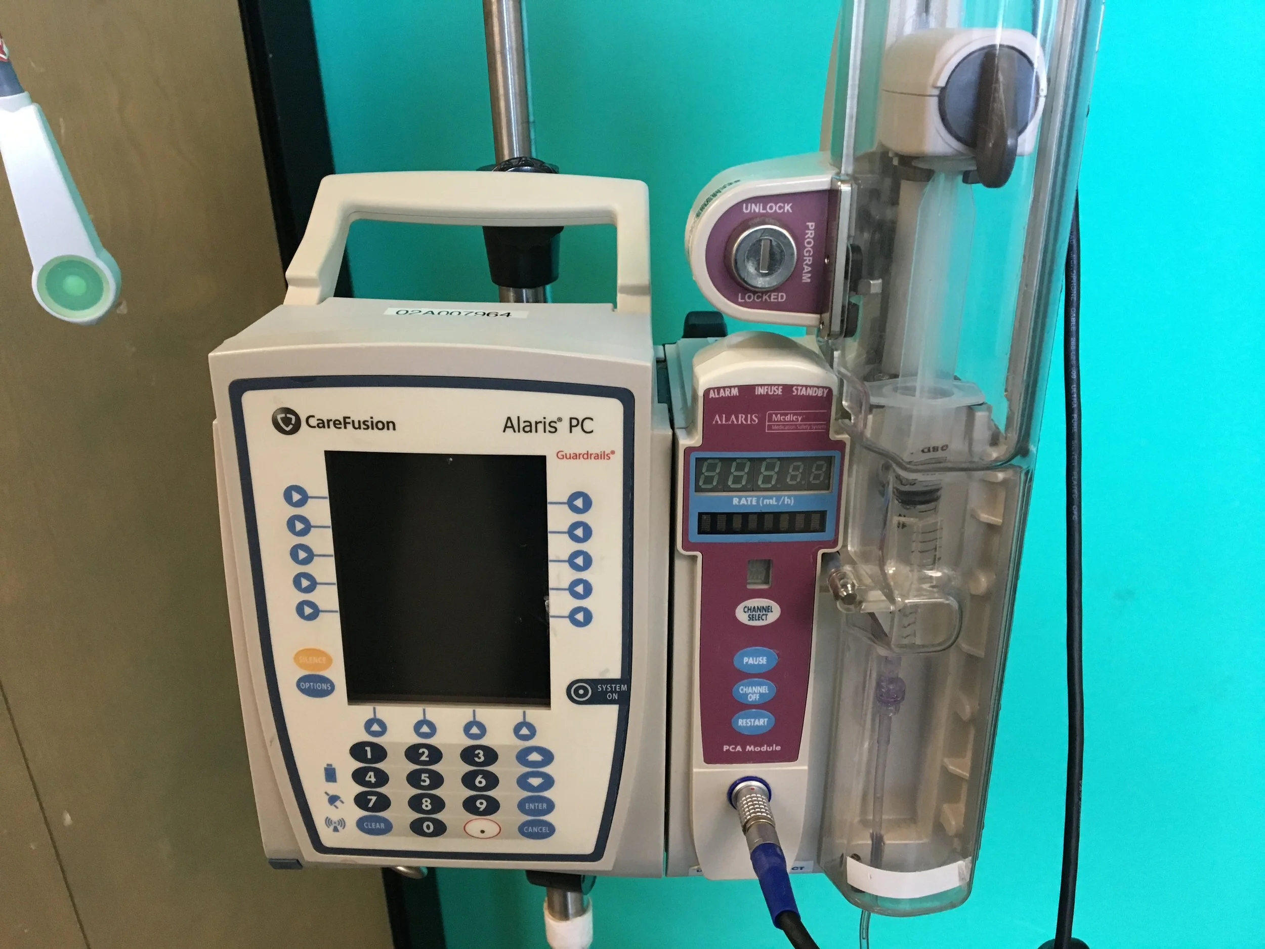 Standard IV Pole w/ Alaris Pump, bag, and line
